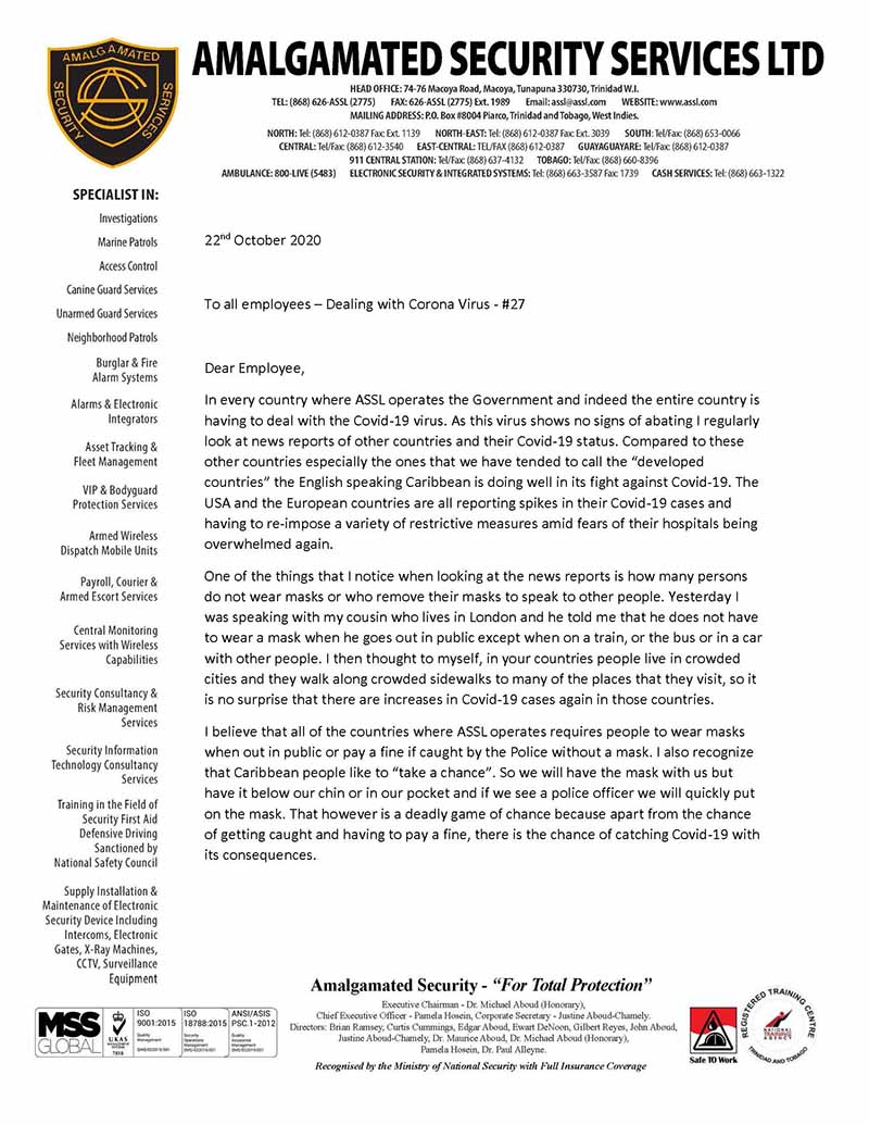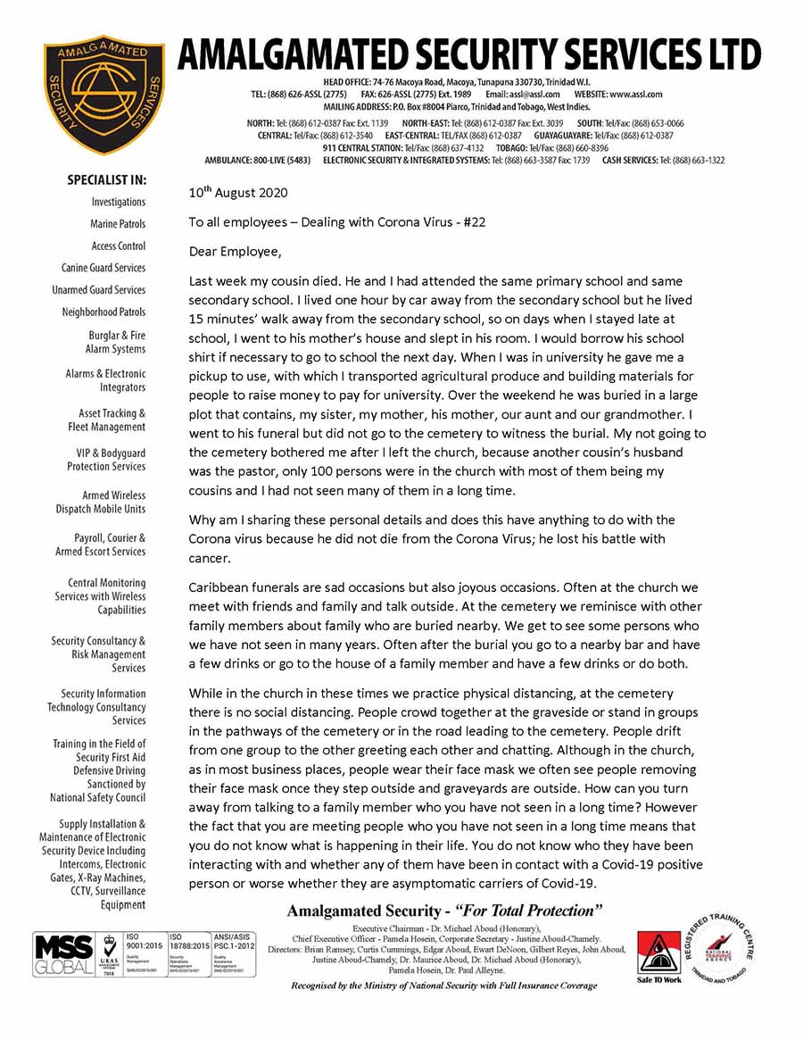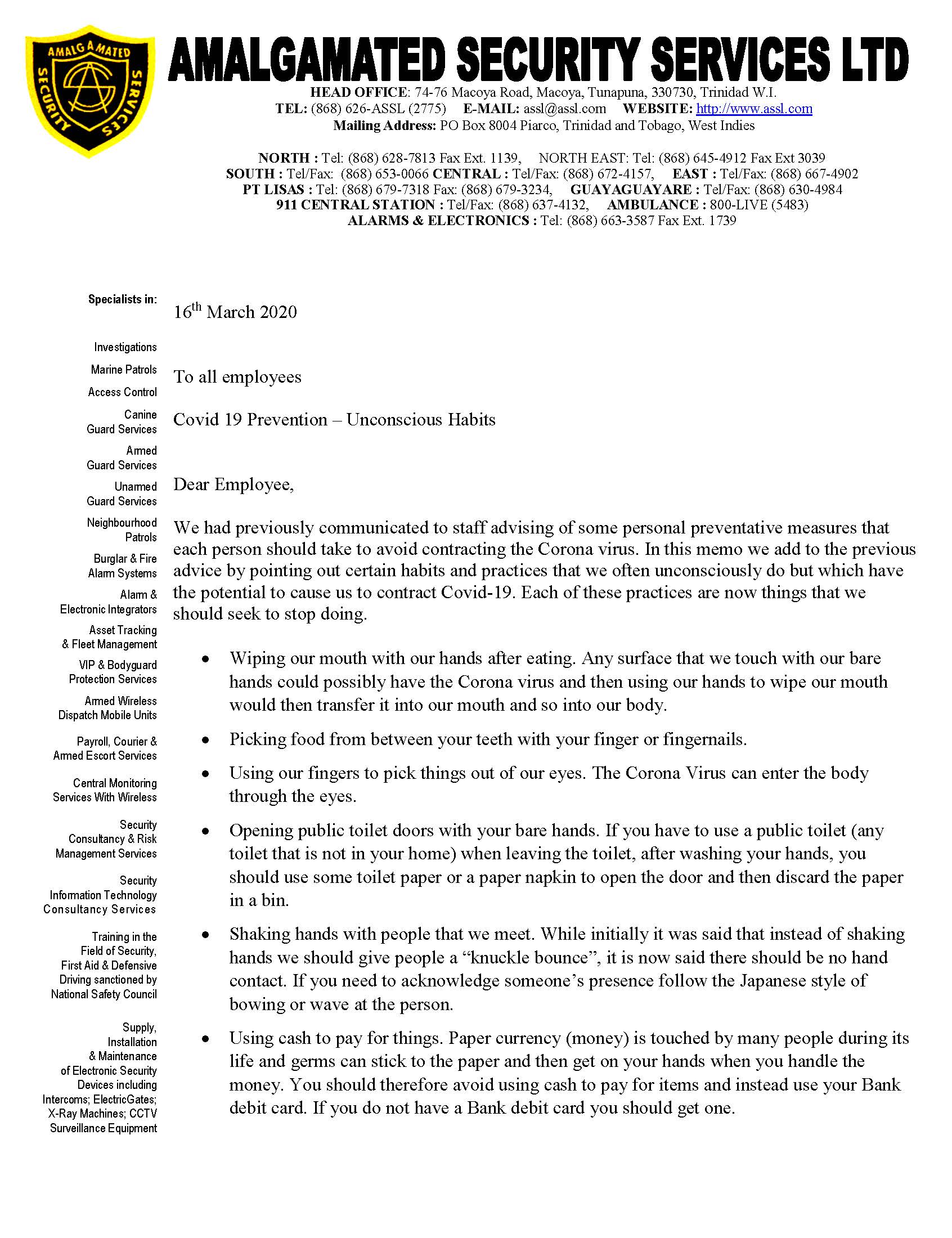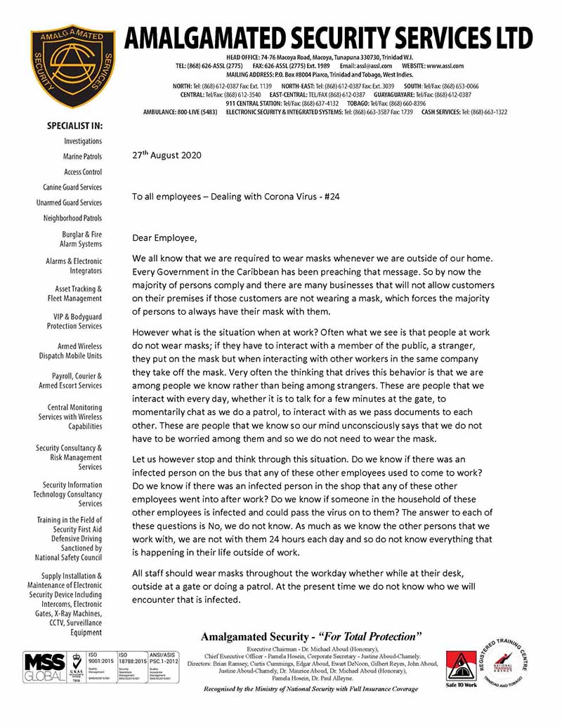 Alternative Security Services - Pandemic News - Pandemic News: COVID-19 Messages from ASSL