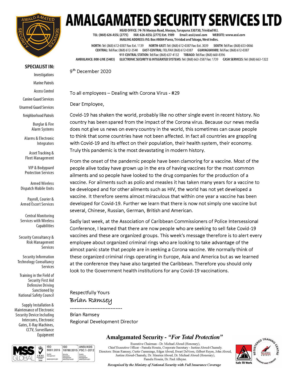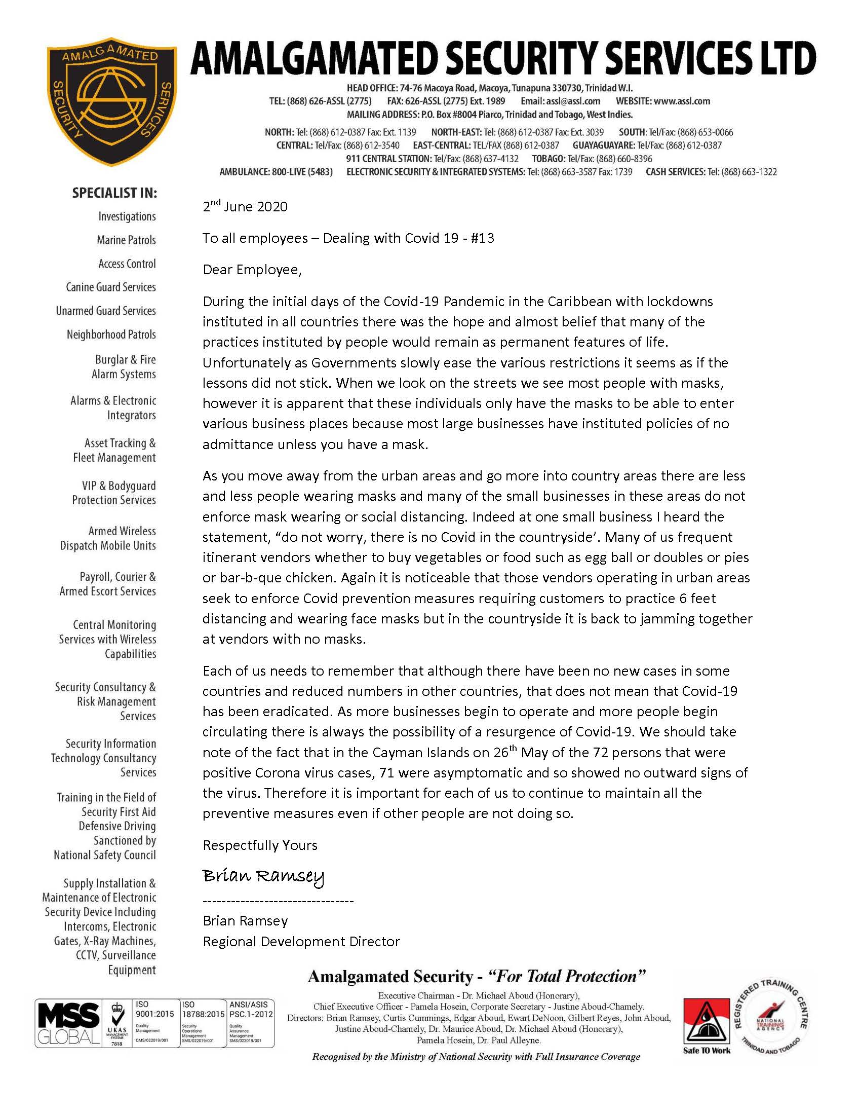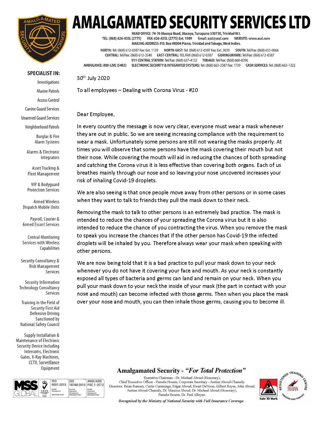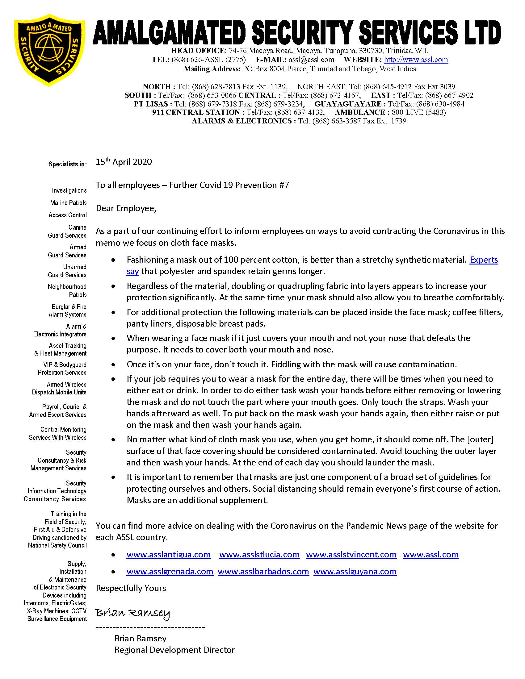 Alternative Security Services - Pandemic News - Pandemic News: COVID-19 Messages from ASSL