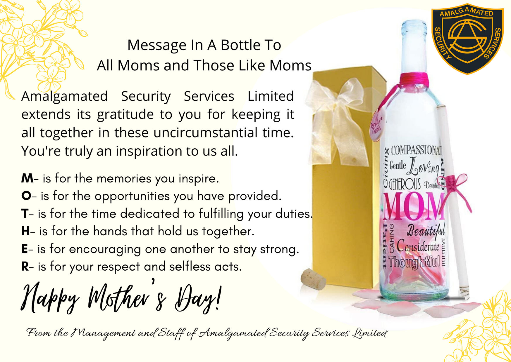 This website uses cookies to manage authentication, for analytics, and other functions. To fully use our website, you must agree that we can place these types of cookies on your device. By signing up to this website and agreeing to the Privacy Policy you agree to this website storing your information. Amalgamated Security Services Policy on our Commitment to Privacy and Protection of Your Personal Data Amalgamated Security Services Limited (ASSL) and its subsidiaries recognize that our employees, and the individuals who represent companies with whom we conduct business and our clients, value their privacy. However, in order to conduct a global business in this increasingly electronic economy, the collection of the personal data and that of enterprises that we do business with and of individuals is often necessary. We respect your right to privacy and are committed to protecting your personal data. This privacy policy explains our privacy practices for our websites, as well as for ASSL’s, its subsidiaries and related companies services that may be accessed through the normal use of our products and services. The following statement explains our information –gathering and dissemination practices.