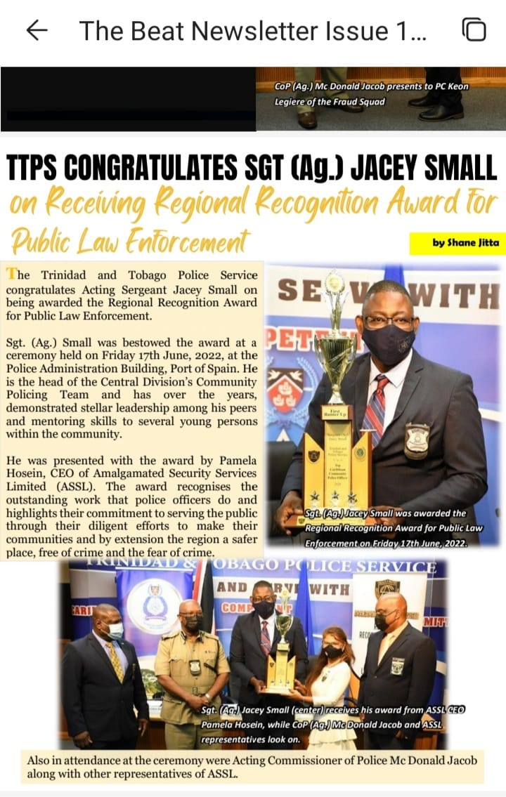 - Beat newsletter - TTPS Congratulates Sgt. (Ag.) Jacey Small